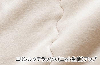 エリシルクデラックスは、エリ蚕シルク綿に、コーマ糸を使用したニット生地を使用することにより、従来の商品よりフィット感やドレープ性を持たせた快適寝具です。