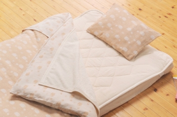 HOME >> オーガニック ベビー >> セットふとん >> デリケートな赤ちゃんのお肌を守る・オーガニックコットン使用ベビーふとん8点セット ひつじ柄