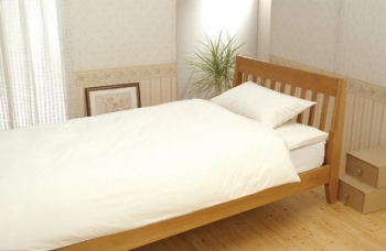 肌触りの良いコーマ糸使いの生地をシーツ素材に、無蛍光・無漂白で仕上げました。綿高密度織なので耐久性があります。